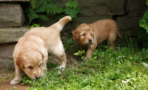 Was geschieht in den ersten acht Wochen beim Züchter? In der Regel trägt die Hündin 60 bis 63 Tage. Bei der Geburt wiegt ein Welpe zwischen 300 und 500 Gramm. Die Mutterhündin kümmert sich von der ersten Minute seines Lebens um den Welpen. Durch Lecken regt die Hündin den Kreislauf an und durchtrennt geschickt die Nabelschnur. Der Welpe krabbelt vom Geruchsinn geleitet und durch Wärmeempfinden zielstrebig zum Gesäuge der Mutter. Seine Augen und Ohren sind noch fest verschlossen. Schon in der ersten Woche beginnt der Kampf um die besten Zitzen und nach dem Säugen kuscheln sich alle Welpen zusammen und schlafen erschöpft ein. Eine wichtige Rolle spielt das Ablecken von Bauch und Hinterteil. Dadurch wird das Entleeren von Blase und Darm angeregt. Nach einer Woche haben die Kleinen bereits ihr Geburtsgewicht verdoppelt und am Ende der zweiten Woche öffnen sich Augen und Ohren. In der dritten Woche verlassen sie mutig die Wurfkiste und erkunden vorsichtig ihre nächste Umgebung. Das Immunsystem ist in den ersten drei Wochen noch nicht kräftig genug um etwaigen Infektionskrankheiten Stand zu halten. Haben Sie als Welpeninteressent bitte Verständnis dafür, dass Sie die Kleinen noch nicht besuchen können. Nach vier Wochen beginnt die Prägungsphase des Welpen. Seine Sinne sind nun voll ausgebildet, er hat inzwischen Zähnchen bekommen und ist entwurmt worden. Nun gibt es nebst der Muttermilch auch feste Nahrung und es ist lustig anzuschauen, wie die kleinen Hunde den Brei auf Boden und Geschwister verteilen. Die Mutter verbringt nun weniger Zeit mit den Welpen. Für den Züchter kommt jetzt die Zeit, in der er mehr Arbeit mit den Welpen hat, da er sich mit der Reinigung der Wurfkiste und der Welpen bisher auf die Hündin verlassen konnte. Unter den Welpen beginnen intensive Kontakte und spielerische Rangeleien. Mit der fünften Woche starten die Welpen ihre ersten Erkundigungen im Freien. Um in der Prägungsphase möglichst viele Erfahrungen zu machen, wird verschiedenes Spielzeug bereit gestellt. Unsere Welpen werden in dieser Zeit auf eine Pfeife konditioniert, indem vor jeder Mahlzeit gepfiffen wird. Sie verbinden mit diesem Zeichen ein positives Ereignis und kommen in freudiger Erwartung zu ihrem Züchter und später auch zum Welpenbesitzer. Kontakt zu Menschen ist in unserer Aufzucht schon durch die große Familie und die hundelieben Nachbarn gegeben. Außerdem freuen wir uns auch sehr, wenn Sie als zukünftiger Welpenbesitzer öfter vorbeischauen. Werden die Welpen in der neunten Woche abgegeben, sind sie geimpft, gechipt, entwurmt und besitzen eine VDH Ahnentafel. |